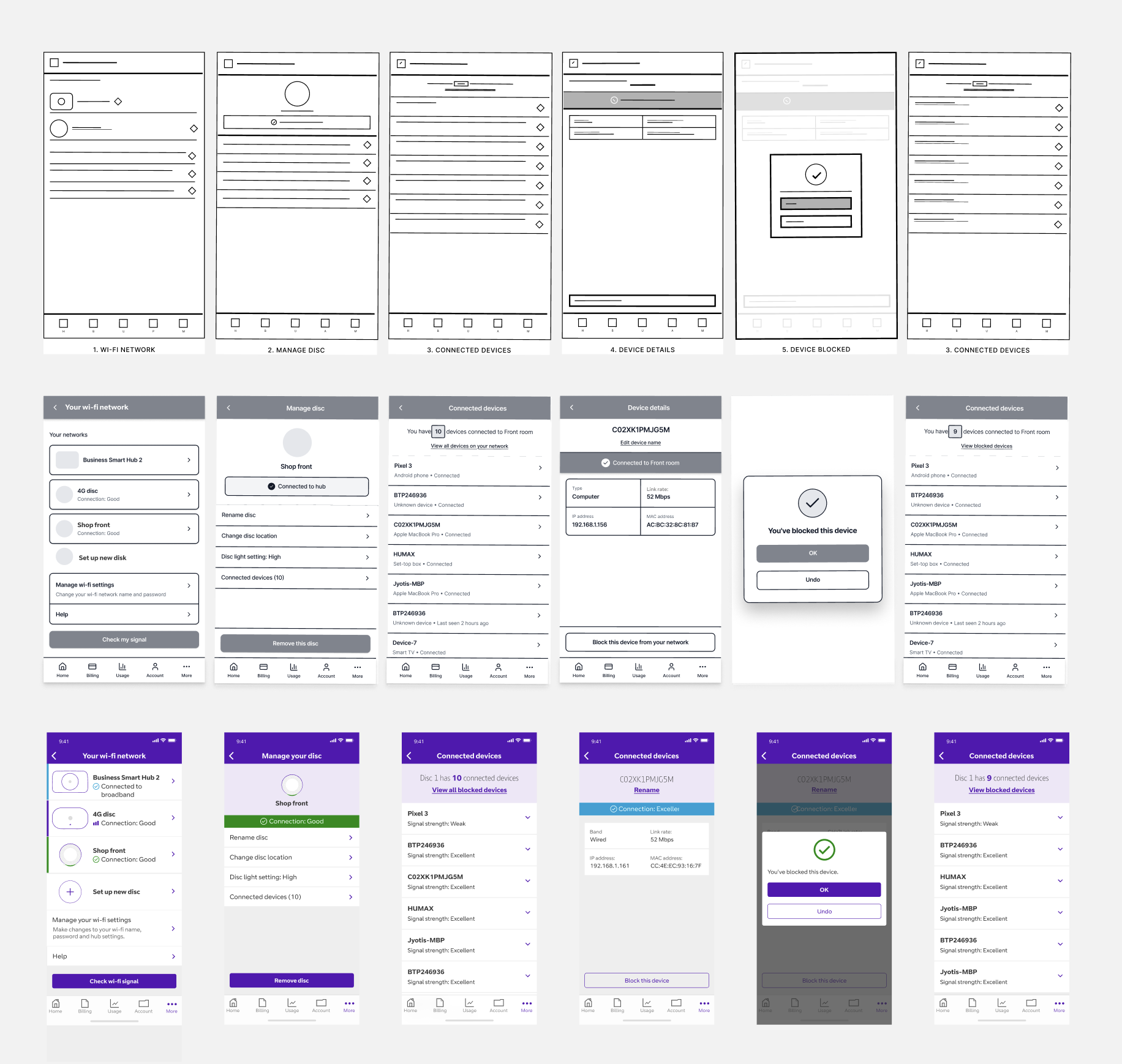 Established Scalable Patterns: Created design system and interaction patterns that accommodated three new device types in the first year without architectural changes. When BT launched 5G devices, they integrated seamlessly into existing flows.