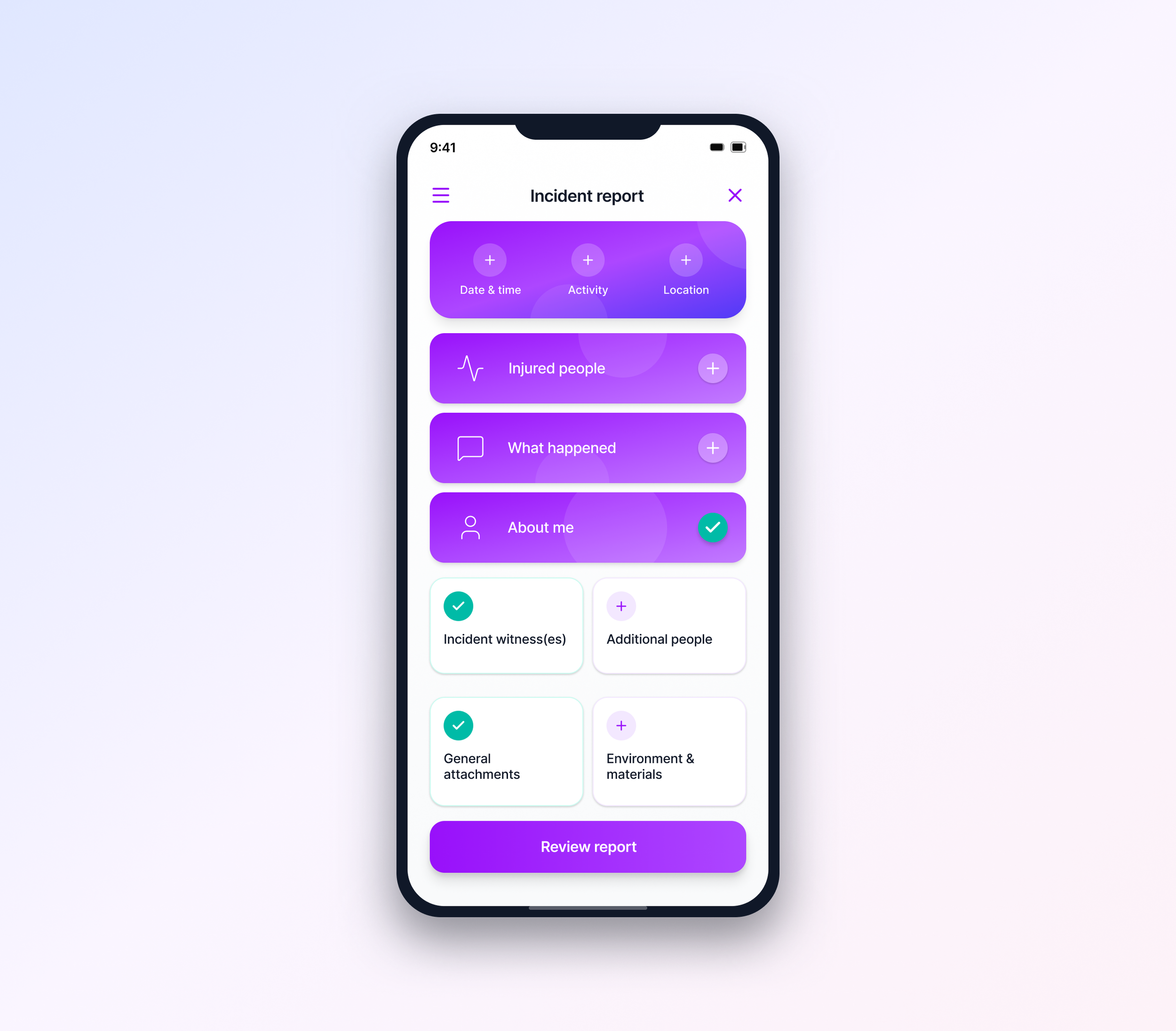 The objective was to design a native iOS app that enabled fast, accurate workplace incident reporting with minimal friction. I led the design of the core UX to support incidents of varying complexity while keeping the experience clear, efficient, and low-effort in time-sensitive situations. In parallel, I defined the visual language and overall look and feel of the product.